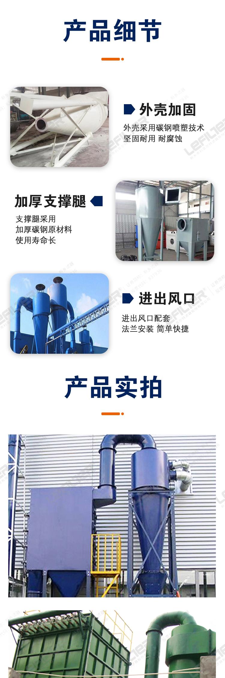 旋風(fēng)除塵器根據(jù)結(jié)構(gòu)的不同分為多管旋風(fēng)除塵器(多個(gè)小型除塵器在一個(gè)殼體內(nèi)并聯(lián)使用)、旁路式旋風(fēng)除塵器(設(shè)有旁路分離室,利用上漩渦分離塵粒)和擴(kuò)散式旋風(fēng)除塵器(呈倒錐體形狀,并裝有反射屏在椎體底部)。